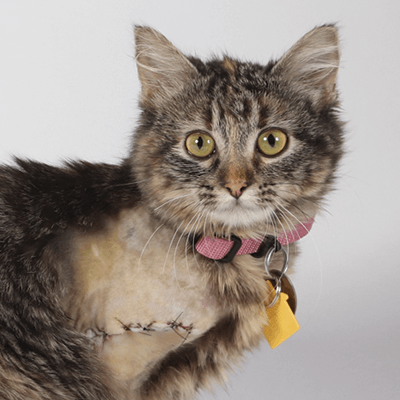 Abused, malnourished and with a severely infected leg, Blaze was found abandoned and alone. After life-saving surgery, a caring staff nursed her back to health and found her a forever home.